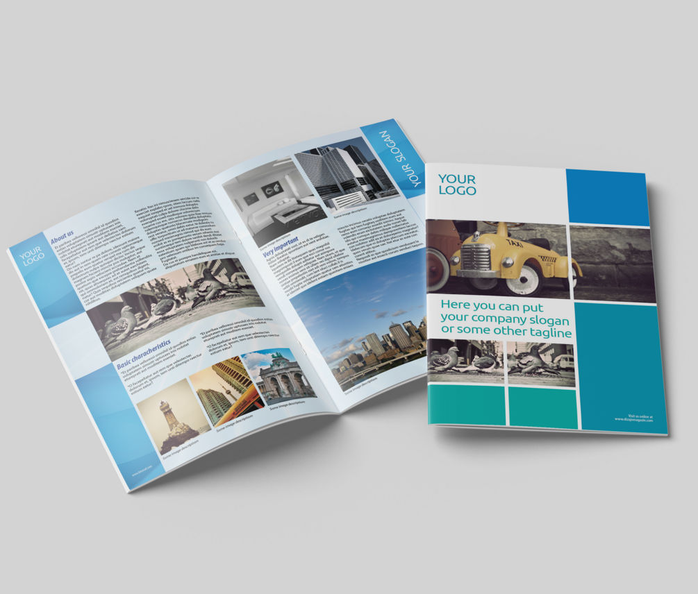 Square blue InDesign template for simple editable A4 brochure suitable for general business presentation. Images are not included in package. Fully editable.